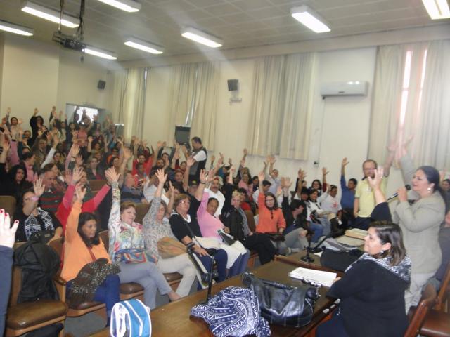 Assembleia lota auditório e aprova por ampla maioria desconto para o fundo de greve