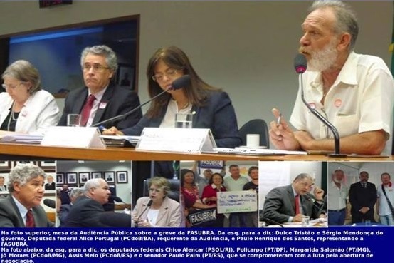 A greve nacional da categoria de técnicos-administrativos em educação foi tema de audiência pública Comissão de Trabalho, de Administração e Serviço Público (24/04). Realizada a pedido da deputada Alice Portugal – PC do B/BA, a audiência teve propostas sobre a greve dos servidores. Deputados do PCdoB, PT e PSOL presentes a Audiência defenderam a abertura de um diálogo com o governo federal. Fasubra fará marcha nos dia 06 e 07 de maio com ANDES e SINASEFE para reforçar seu pleito pela abertura de interlocução.