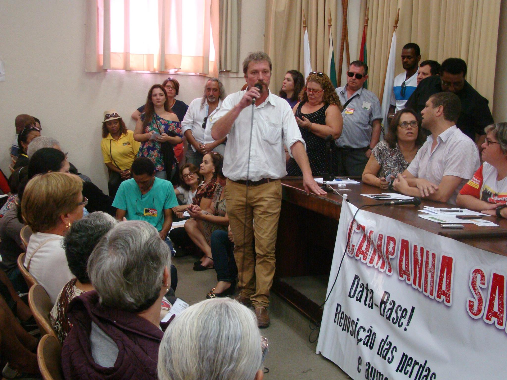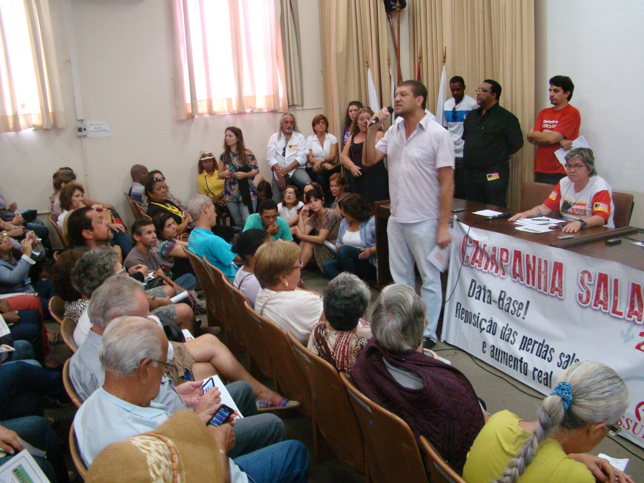 Temos garantia da data-base na constituição federal, mas infelizmente nesta universidade, uma nota técnica do tribunal de contas da união vale mais que a constituição federal. Temos que mudar, colocar a força da classe trabalhadora de novo no comando desta situação. Queremos sim uma data-base, direitos que todo trabalhador tem: que é saber quando vai ter aumento, e hoje não sabemos. Queremos política salarial e vamos defender neste congresso também, no mínimo uma política do salário mínimo, porem queremos mais: pois temos perdas, 27% que estamos pedindo frente a essas perdas. Tem que ter política salarial, que é a reposição da inflação, mais o crescimento do PIB.
