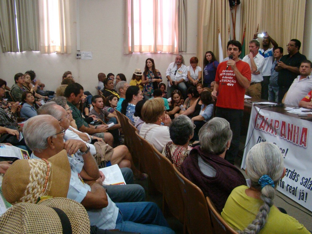 Pra finalizar, Neco denunciou que o discurso hipócrita anticorrupção, que foi uma arma política usada muitas vezes pela direita como forma de desestabilizar governos mais progressistas. “Esse papo a gente conhece de longe. Fizeram em 54 com Getúlio, fizeram isso com Jango, tentaram fazer isso com Lula, e agora querem fazer isso com Dilma”, disse Neco. “Nós sim somos contra a corrupção, contra desmandos e malfeitos em todos os campos. Desde lá nas altas esferas no executivo, no legislativo, no judiciário, seja no serviço público, e seja no sindicato, por que a gente está aqui com uma auditoria, porque não aceita corrupção”.