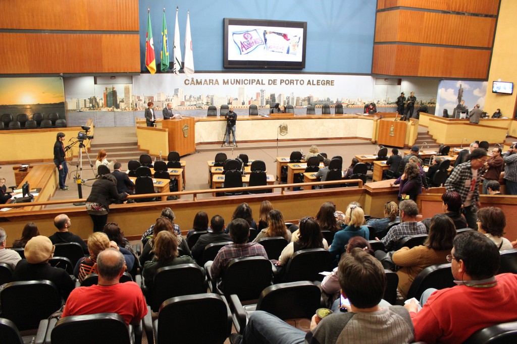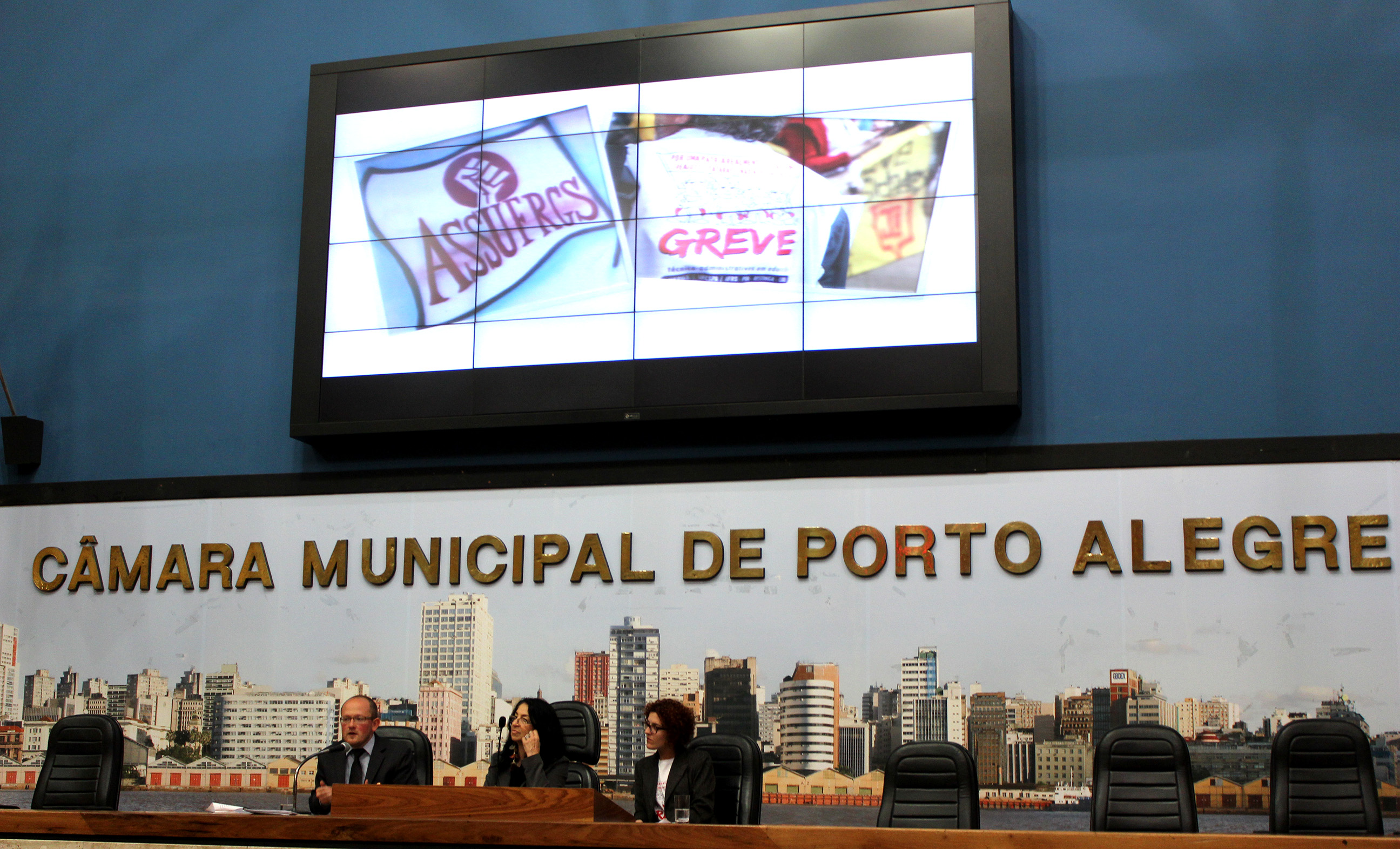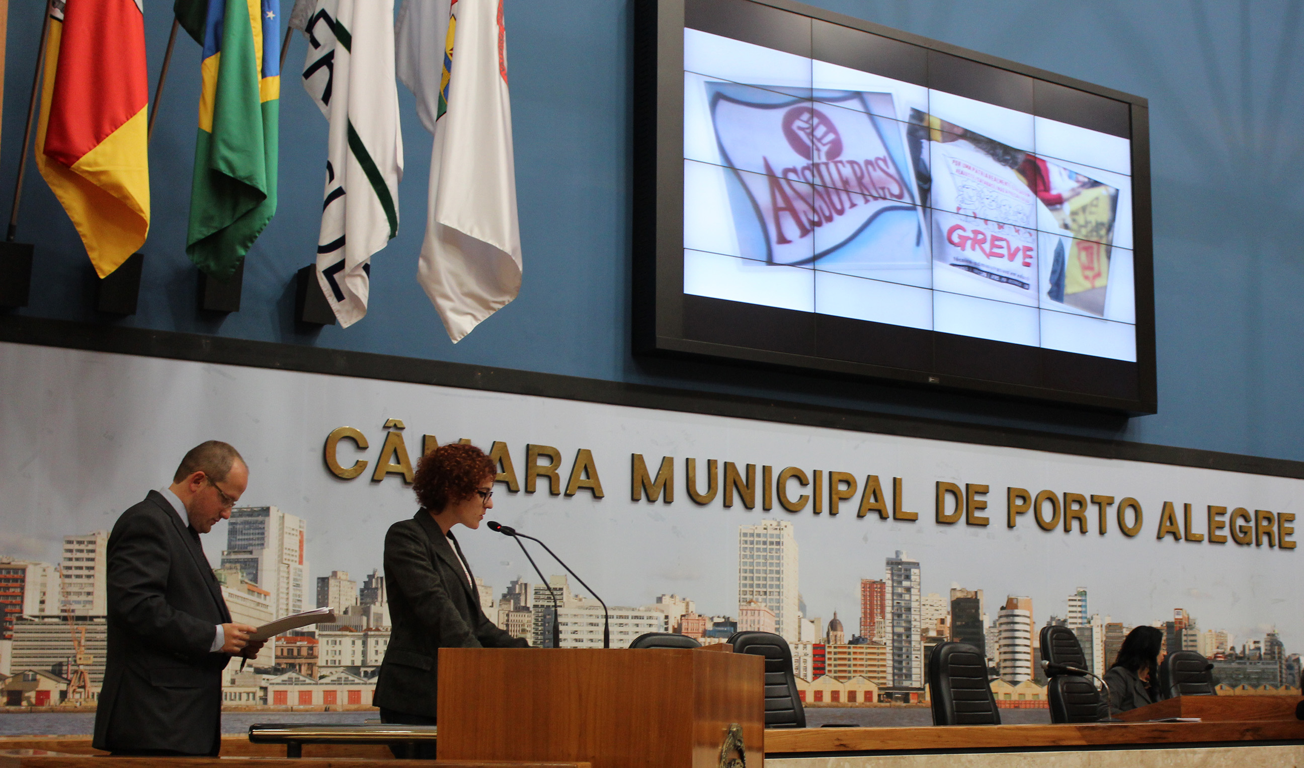 Os servidores em greve da UFRGS, UFCSPA e IFRS participaram do espaço Tribuna Popular, na Câmara de Vereadores de Porto Alegre, nesta quinta (02). Representando os técnicos em greve, discursaram sobre as pautas e reivindicações os servidores da UFRGS Igor Corrêa Pereira, coordenador de Imprensa da ASSUFRGS, e Mariane Quadros, do Comando Local de Greve.