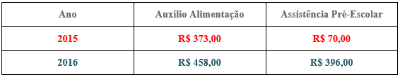 No caso da Assistência Pré-Escolar será considerada a inflação desde abril de 1995 a 2015. O valor ficaria em R$ 396,00. Esse reajuste beneficiará mais ou menos 74 mil servidores ativos. O impacto de reajuste dos três benefícios será de 1 bilhão e 250 milhões.