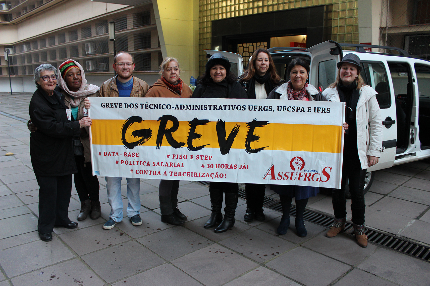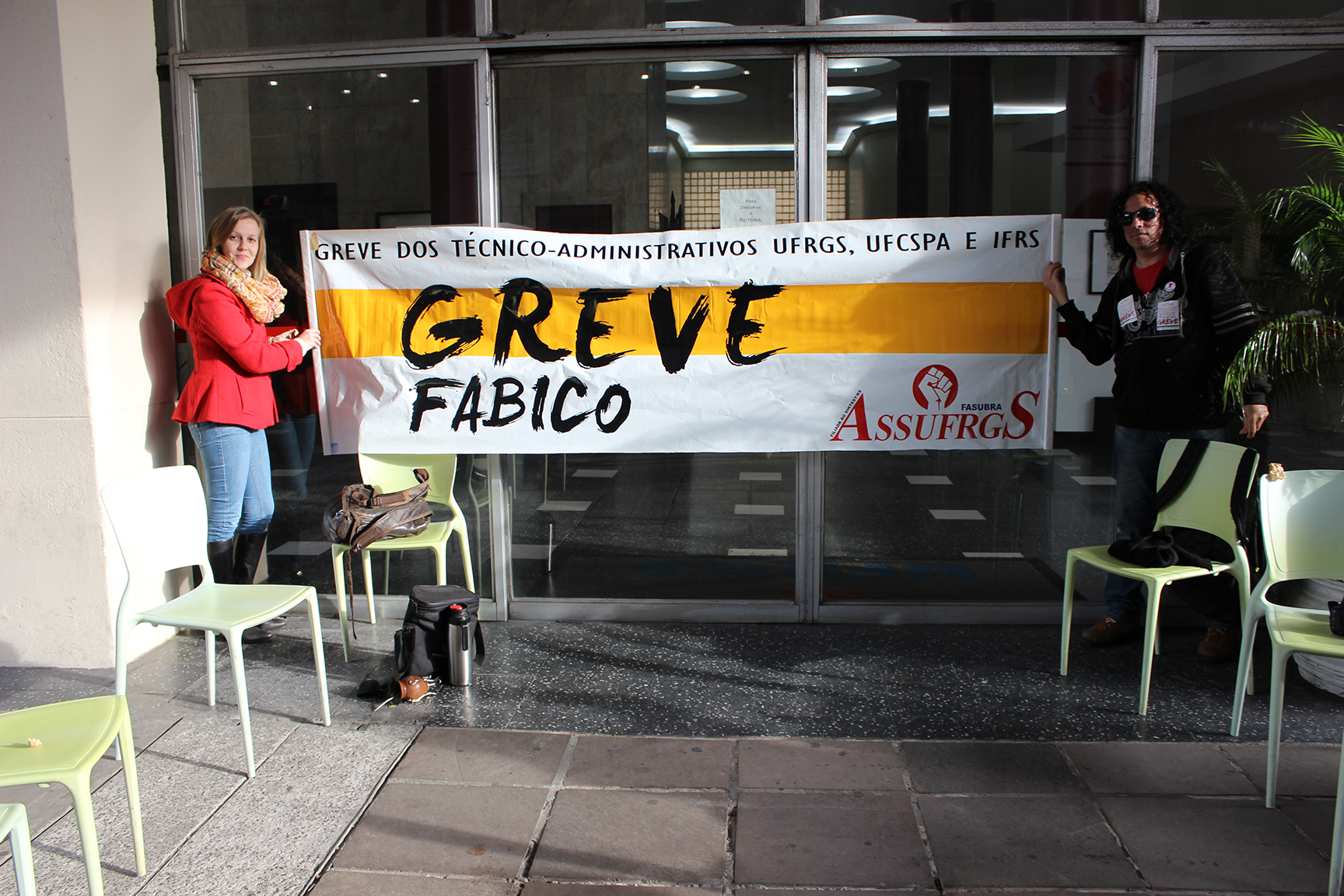 A Reitoria da UFRGS foi fechada na manhã desta quinta-feira (23) pelos técnico-administrativos em greve da UFRGS, UFCSPA e IFRS. O bloqueio ao prédio teve início de manhã cedo e concentrou cerca de 200 trabalhadores. O fechamento da reitoria fez parte do Dia Nacional de Atos nas Reitorias para pressionar o governo, na nova rodada de negociações do MEC e MPOG com a FASUBRA, nesta tarde. Os trabalhadores em greve, também, reivindicaram o posicionamento público da Reitoria da UFRGS em relação à greve dos servidores e contra o corte de verbas para a educação, apontando quais serviços são afetados pelo corte.