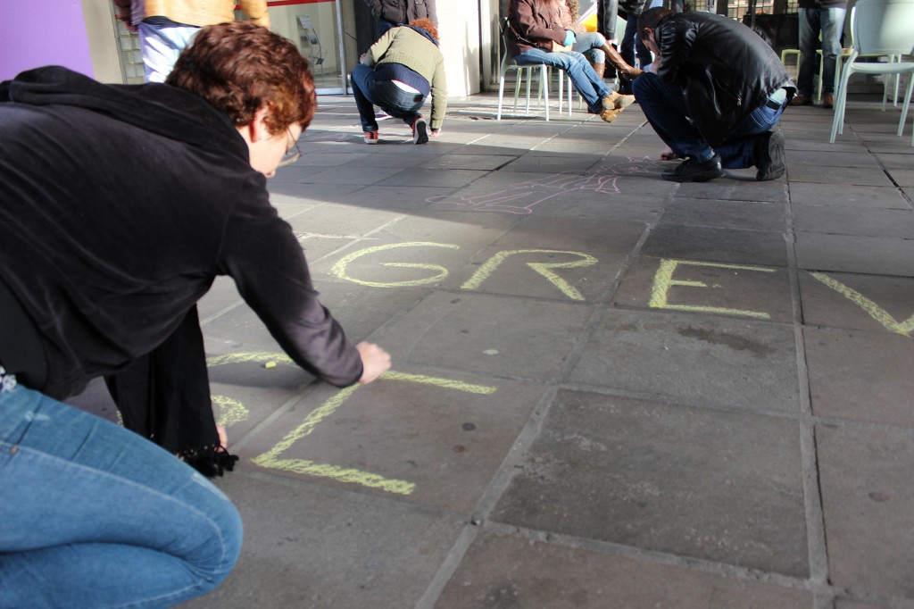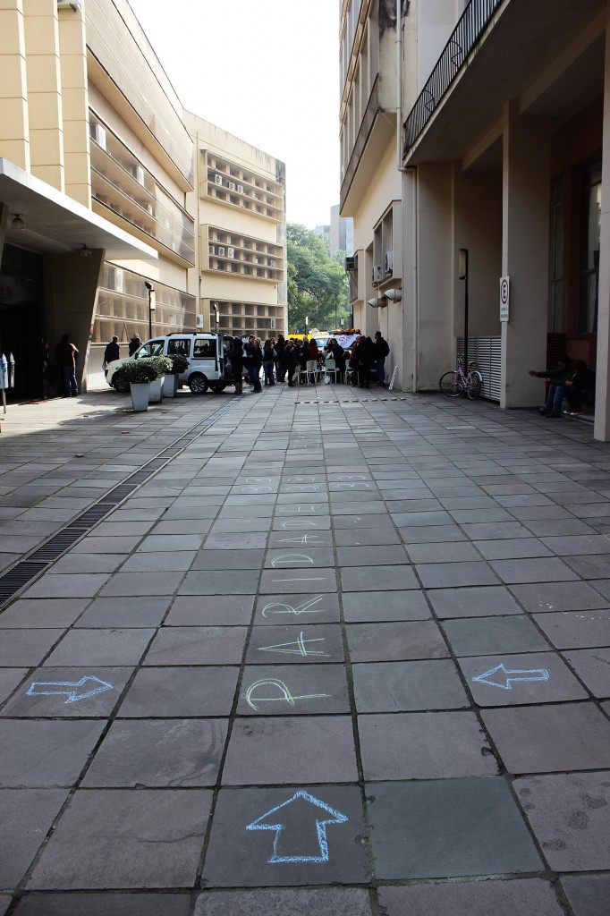 Os estudantes do DCE da UFRGS também fizeram presentes no ato em apoio à greve na Educação.