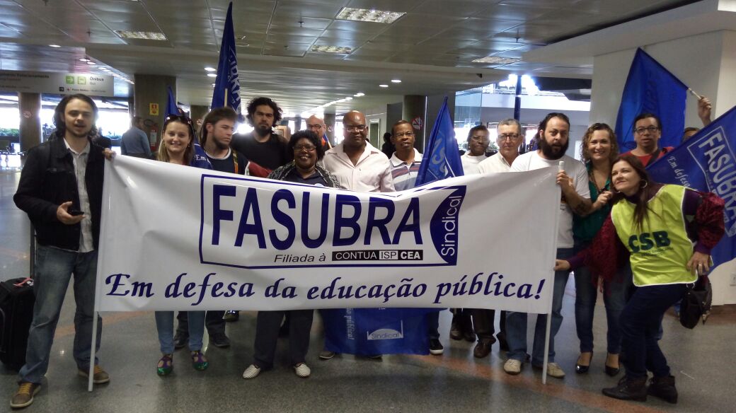 Atendendo ao chamado da Fasubra, seis colegas da ASSUFRGS chegaram em Brasília na noite desse domingo: os coordenadores João Cunha, Jeronimo Menezes e Jorge Torres; e Charles Almeida, Rafael Berbigier e Sibila Binotto. Logo no início da manhã desta segunda (1/8), a mobilização ocorreu no aeroporto de Brasília, com pressão sobre os deputados que chegavam para a sessão. Após, a delegação foi para a Câmara, para nova rodada de conversa com os deputados nos gabinetes. Pela tarde, participaram de audiência pública com centrais, sindicatos e parlamentares sobre o projeto.