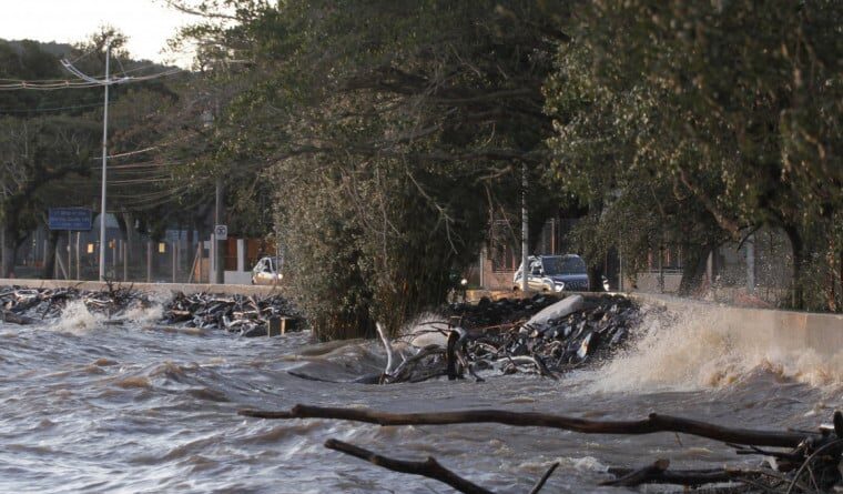 Nas ilhas, ruas estão inundadas. Moradores tiveram que ser resgatados, mas muitos seguem em moradias ameaçadas pelas águas por medo de saques. Ontem, empurrada por ventos fortes, a água do Guaíba avançou sobre campos do CT do Internacional, sem causar grandes danos até agora. No Guarujá, ruas ficaram alagadas. Em Ipanema, ondas fortes atingiram a mureta em construção na orla, conforme apuração realizada pela Matinal.
