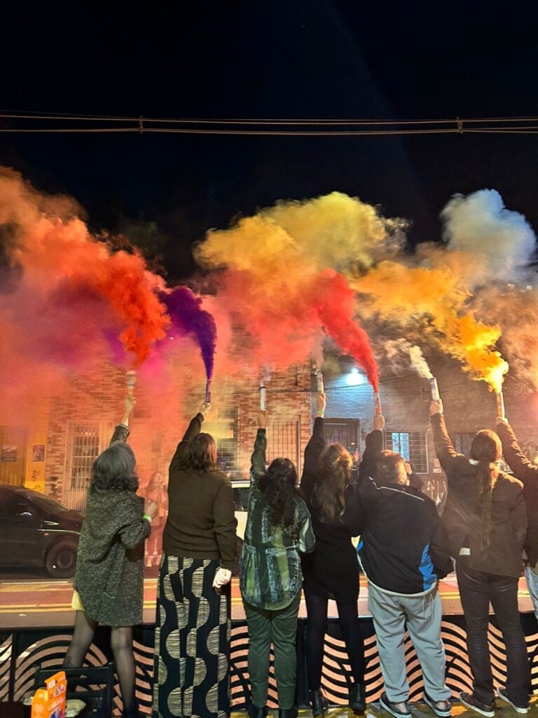 A confraternização contou com um momento simbólico onde os colegas da categoria realizaram ação com bastões de fumaça colorida, remetendo às cores da bandeira da comunidade.