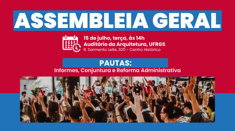 Na próxima terça-feira (15), acontecerá Assembleia Geral da ASSUFRGS, às 14h, no Auditório da Arquitetura da UFRGS (R. Sarmento Leite, 320 – Centro Histórico).