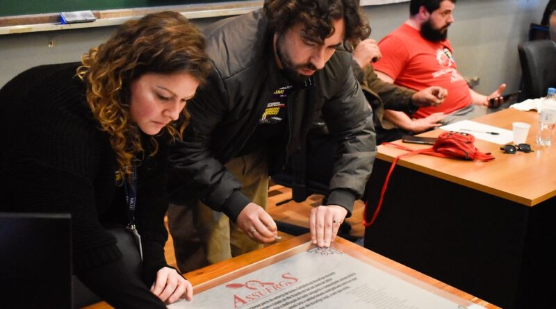 A placa foi apresentada durante a última Assembleia Geral da ASSUFRGS, realizada no dia 15 de julho. A iniciativa busca valorizar o protagonismo de cada trabalhador(a) que esteve presente nessa jornada.