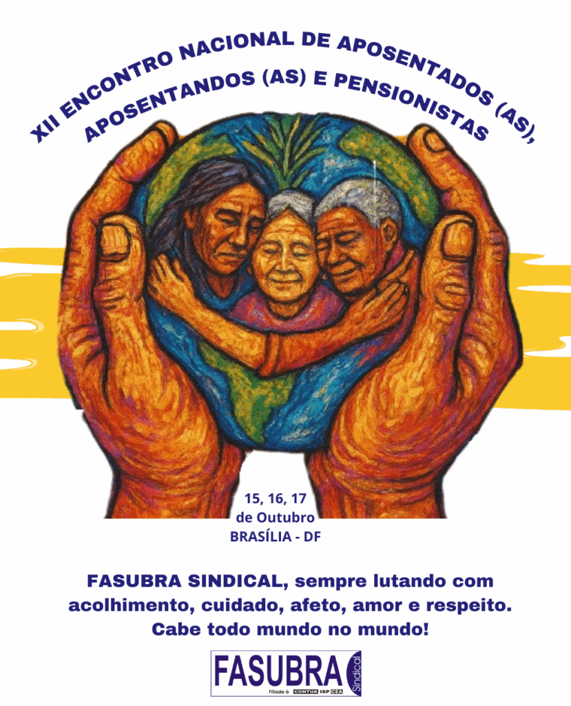 Nos dias 15, 16 e 17 de outubro, a FASUBRA Sindical realizará, em Brasília (DF), o XII Encontro Nacional de Aposentados(as), Aposentandos(as) e Pensionistas — um importante espaço de debate, mobilização e fortalecimento da categoria. A ASSUFRGS abre inscrições para a categoria participar do evento. Inscrições encerram no dia 03 de outubro, sexta-feira, às 18h. Confira o regramento e faça sua inscrição preenchendo o formulário disponível no link abaixo: