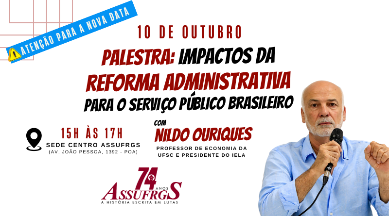 Leia MaisNa sexta-feira, 10 de outubro, a ASSUFRGS Sindicato convida o economista Nildo Ouriques para uma palestra que versará sobre os