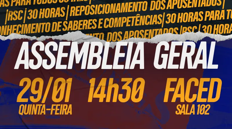 Leia MaisNesta quinta-feira (29), a sala 102 da FACED sediará a Assembleia Geral da ASSUFRGS, a partir das 14h30. No dia,